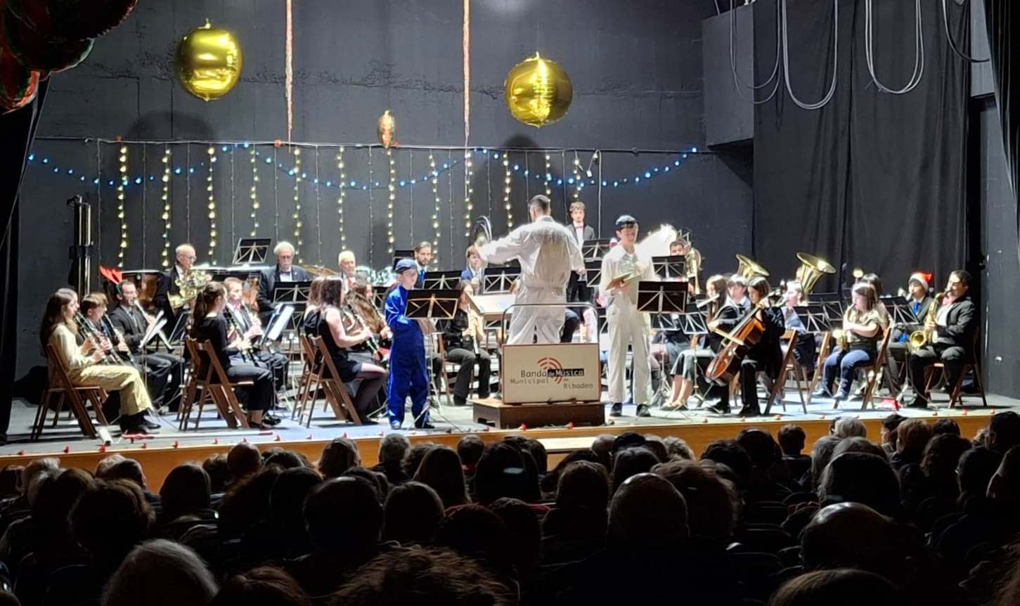 O concerto comezou coa interpretación de Sandpaper Ballet, de Leroy Anderson, na que actuaron como solistas Daniel Antolín Balea e ⁠Gael Bouso Galocha, que tocaron lixas, das que usan os pintores, do que ían disfrazados os dous percusionistas e tamén David Ballester. A continuación a Banda de Ribadeo interpretou estas pezas: Let is snow!, arranxada por Johnnie Vinson; Santa Claus is comin’ to Town, con arranxos de Michael Kamuf; Rudolph the red-nosed reindeer, arranxada por Michael Brown;  Christmas a la Big Band, con arranxos de Larry Clark; e Pop Español en Concierto, arranxada por Manuel Castrejón.